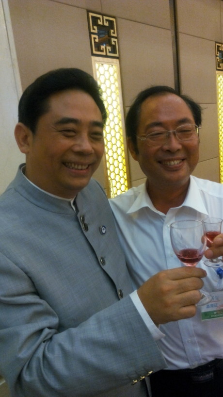 我公司銘澤機(jī)械董事長(zhǎng)李新生與杰出華商協(xié)會(huì)主席盧俊卿在幸福酒會(huì)上合影